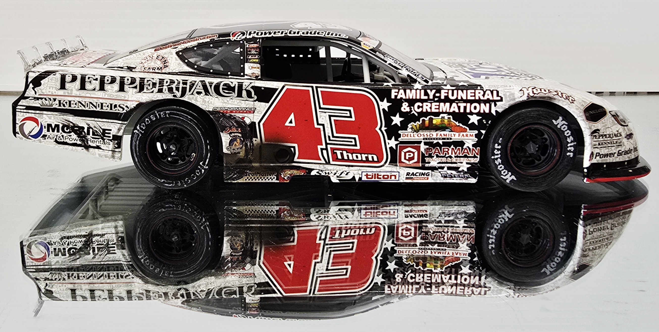Limited edition of 125 made. After leading the most laps and finishing second in the previous two editions of the Snowball Derby at Pensacola, Floridas 5 Flags Speedway, Derek Thorn was able to seal the deal and earn the victory in the 2022 running of the prestigious Super Late Model race. With his No. 43 Pepperjack Kennels / The Tool Shack / Power Grade Inc. Super Late Model for Campbell Motorsports, Thorn started second and immediately jumped out to the lead. He was out front for 306 of the races 318 laps and held strong over multiple late-race and overtime restarts to become the first California native to win the crown jewel short track event. Now, Lionel Racing is excited to present the official Race Win version die-cast of Thorns Snowball Derby car.