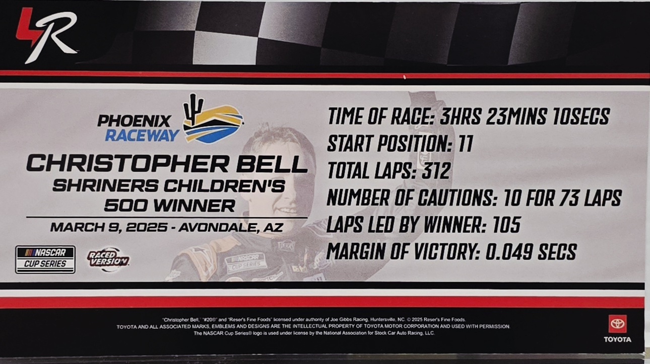 In a thrilling, side-by-side, finish, Joe Gibbs Racing driver Christopher Bell secured his third-straight NASCAR Cup Series® victory in the Shriners Children’s 500 at Phoenix Raceway. Bell thwarted the advances of his teammate to the checkered flag to become the first driver to win three races in a row in the NASCAR Cup Series® Next Gen car era. Now, Lionel Racing is excited to offer NASCAR® fans the official Raced-Win die-cast of Bell’s No. 20 Reser’s Fine Foods Toyota Camry XSE.