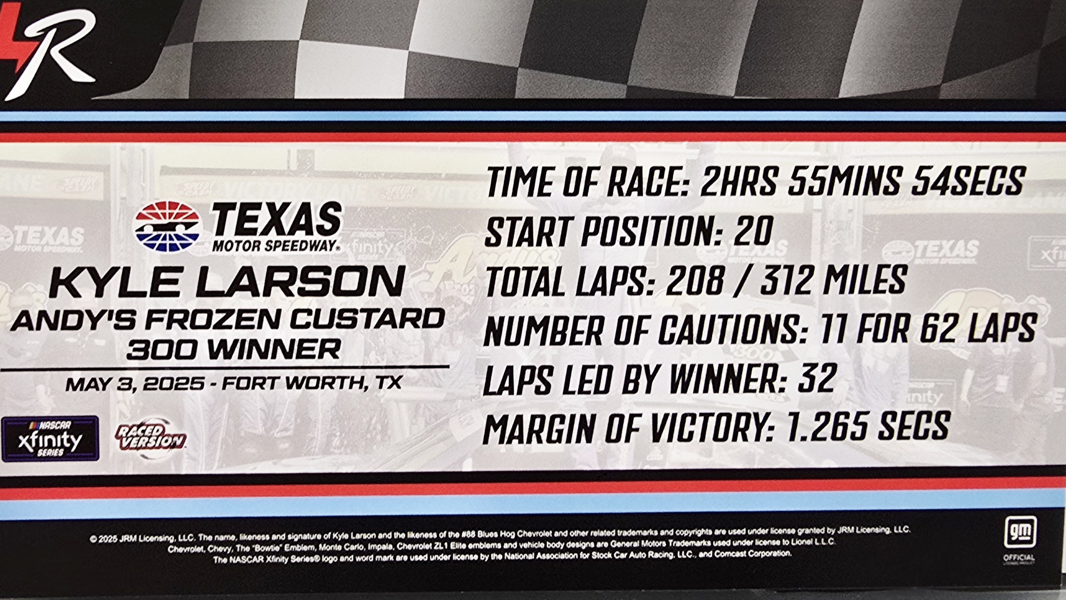 Kyle Larson utilized a late pit stop and a fast No. 88 Blues Hog Chevrolet to win the NASCAR Xfinity Series® race at Texas