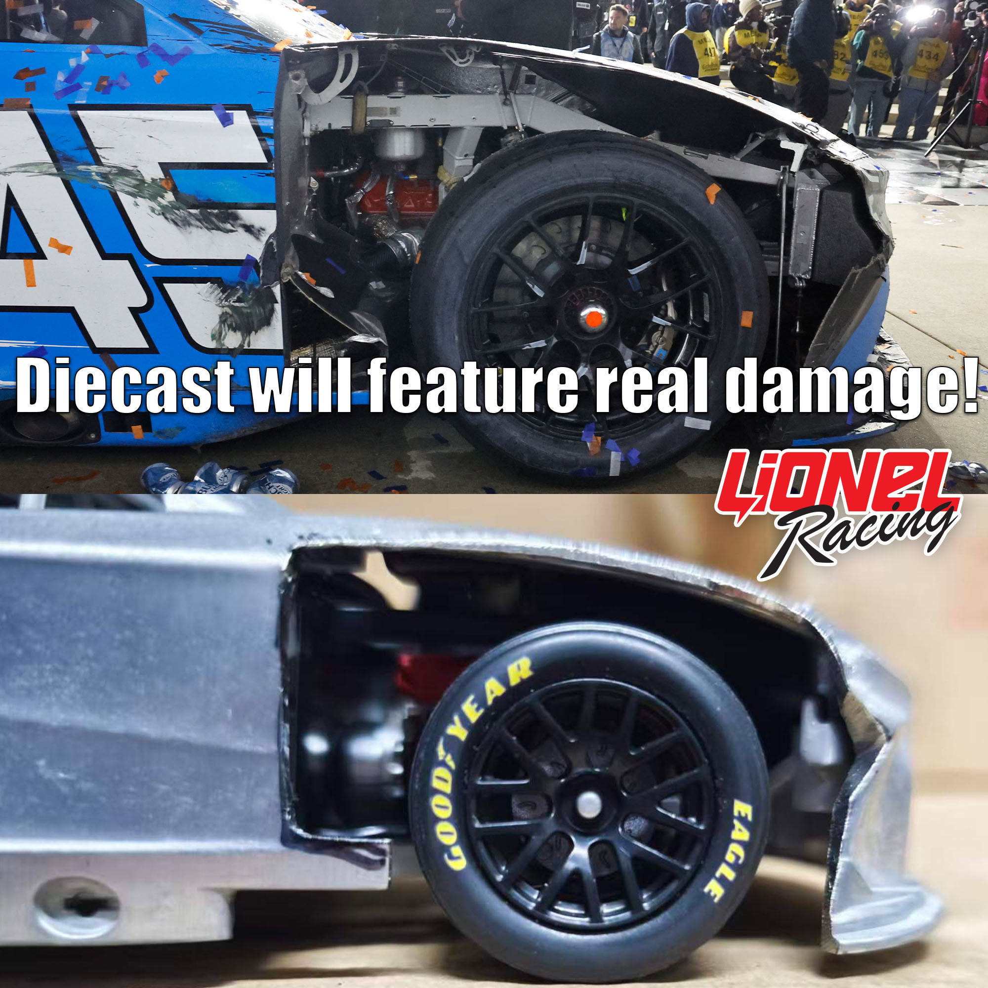 with the No. 45 Pinnacle Toyota Camry XSE, overcame significant fender damage sustained early in the race to take the lead on the final lap for the historic win. Now, Lionel Racing is excited to offer NASCAR® fans the official Raced-Win die-cast of Reddick’s No. 45 Pinnacle Toyota Camry XSE. Each die-cast recreates all the damage, scuffs, markings,